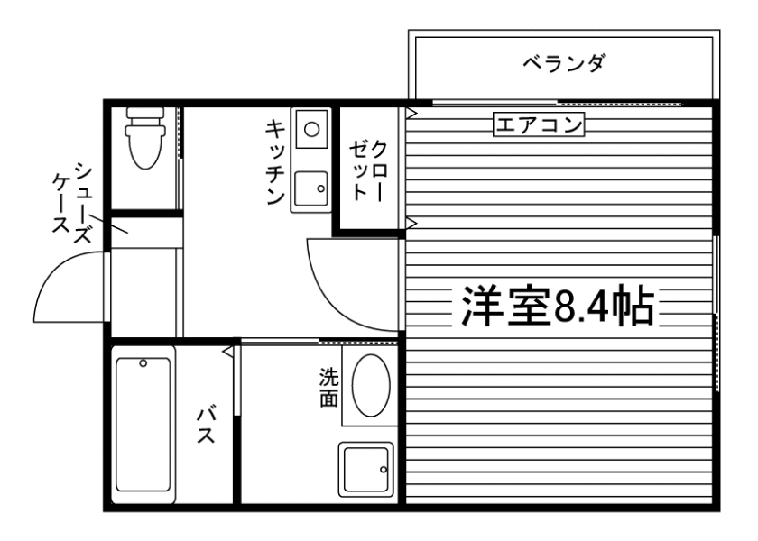 セパレート(バス・トイレ)/独立洗面化粧台/洗濯機置場(室内)/ガスコンロ(1口)/フローリング/バルコニー/収納/シューズケース/インターフォン(TVモニター付)/エアコン |