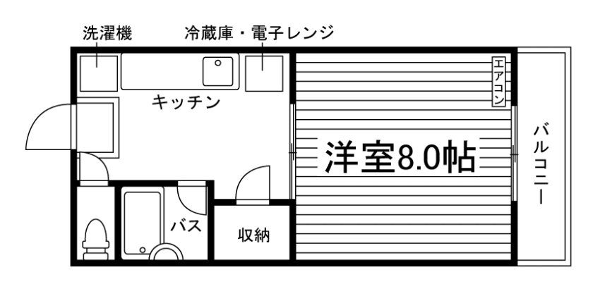 8.0帖の広々居室!家電3点付きで引越しラクラク☆