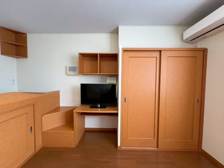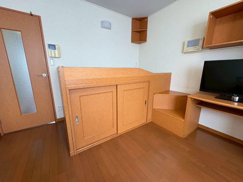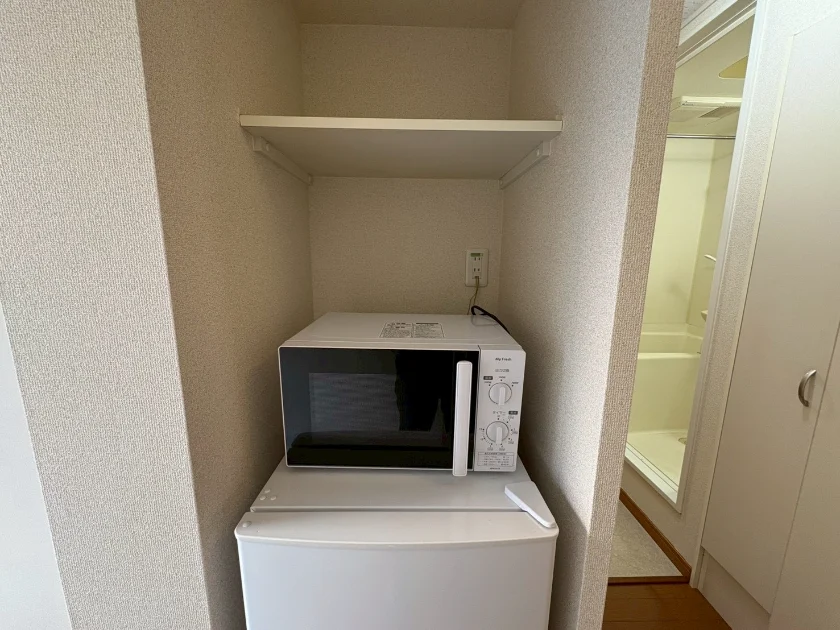 セパレート(バス・トイレ)/洗濯機置場(室内)/温水洗浄便座/浴室乾燥機/IHコンロ(1口)/家具家電付/冷蔵庫(2ドア)/居室照明器具/電子レンジ/ベッド/インターフォン(TVモニター付)/暗証番号式キー/エアコン |