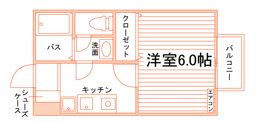 1K/21.53m²/6帖 |