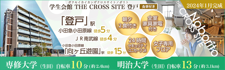 急行停車駅で小田急・JRの2路線利用可能な「登戸」駅の築浅食事付き学生会館!新宿まで電車20分(乗換なし)・渋谷まで電車22分(乗換1回)で都心へのアクセス便利♪