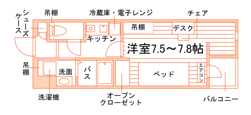 1R~1K/21.7m²~23.4m²/7.5帖~9.8帖