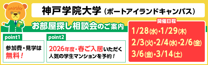 【神戸学院大学(ポートアイランドキャンパス) お部屋探し相談会のご案内】