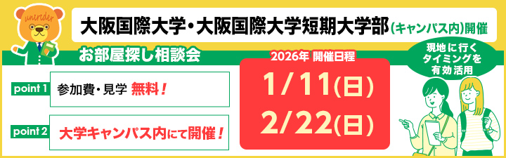 【大阪国際大学・ 大阪国際大学短期大学部 お部屋探し相談会のご案内】