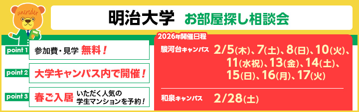 【明治大学 キャンパス内開催、お部屋探し相談会のご案内】