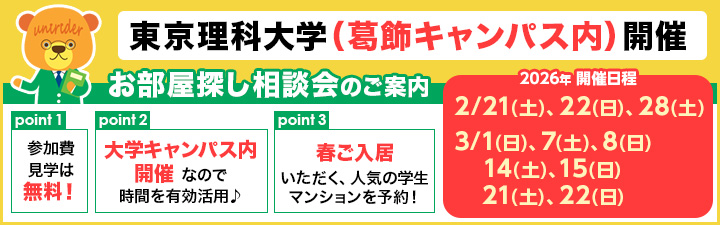 【東京理科大学(葛飾キャンパス)キャンパス内開催、お部屋探し相談会のご案内】