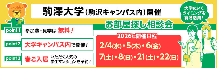 » 駒澤大学(駒沢キャンパス)の通学に便利な学生マンション一覧 はこちら