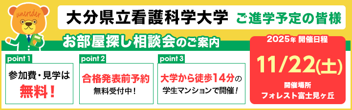【大分県立看護科学大学】11月22日、学校推薦型選抜をご受験の方へ。おすすめ女子専用マンションをご紹介(合格発表前予約受付中)