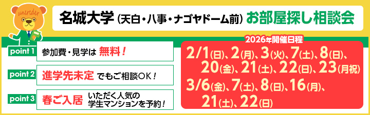 【名城大学(天白・八事・ナゴヤドーム前キャンパス) お部屋探し相談会のご案内】
