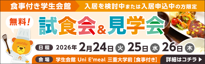 【三重大学】食事付き・家具家電付きの学生マンションのご紹介